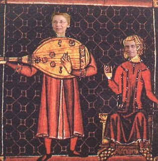 Que D. Dinis era muito mulherengo até Isabel de Aragão sabia. Que era poeta e trovador vem em todos os manuais escolares. O que me deixou perplexo foi uma gravura da idade média representando o rei recitando os seus poemas acompanhado de uma tocadora de bandolim como era costume na época. É que as suas caras não me eram estranhas.