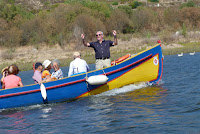 Como o castelo fica numa ilha no meio do Tejo dividimos as forças por dois barcos cada um disputando a honra de ser o primeiro a desembarcar os seus homens (bem, de facto, eram mais mulheres) na ilha.